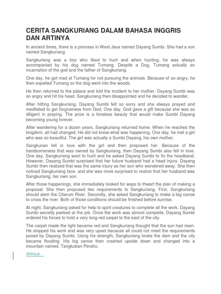 Cerita Singkat Sangkuriang Dalam Bahasa Inggris - Contoh Naskah Drama Sangkuriang Dalam Beinyu Com - Kemudian, perahu terbalik itupun berubah menjadi gunung yang disebut tangkuban perahu.. Ada yang tahu kenapa cerita legenda bahasa inggris bisa dimasukkan sebagi contoh. Versi pertamanya dalam bahasa inggris, bagi yang ingin hiburan disela santai silahkan dinikmati langsung cerita sangkuriang berikut. Cerita sangkuriang dalam bahasa inggris secara ringkas mengisahkan seorang pria yang tampan dan sakti bertemu wanita cantik saling jatuh . Berikut adalah contoh cerita narrative text yang berasal dari jawa barat, yaitu cerita sangkuriang dalam bahasa inggris. Cerita singkat sangkuriang dalam bahasa inggris (260797).